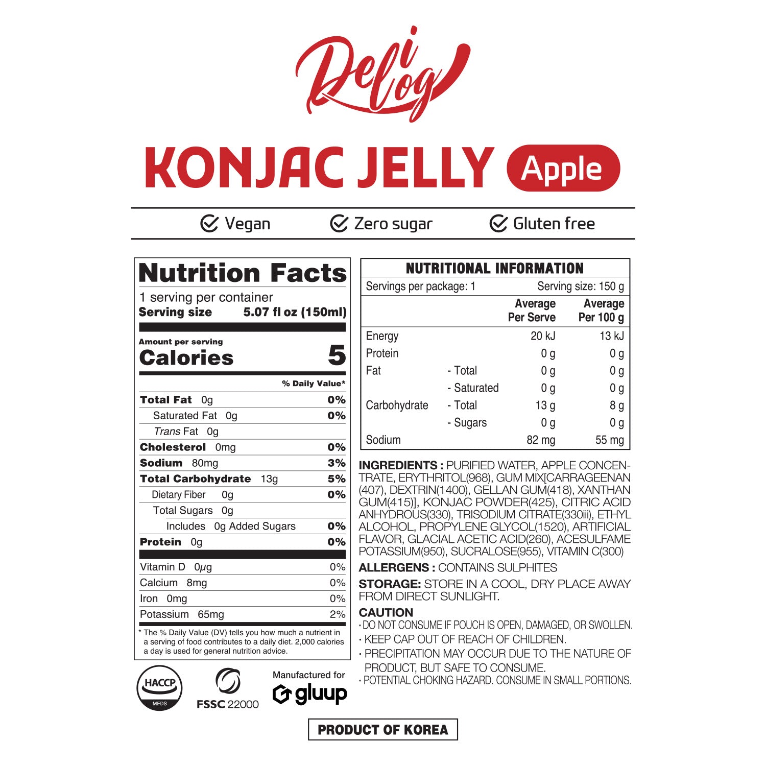 Delilog Konjac Jelly (Apple) stands as the ultimate low-calorie diet snack, providing a sweet and healthy alternative suitable for all ages. With only 5 kcal per pouch, this nutritious drinkable jelly, crafted from real fruit extract, offers a convenient and portable solution in its innovative spout pouch, ensuring you can enjoy it anytime, anywhere.