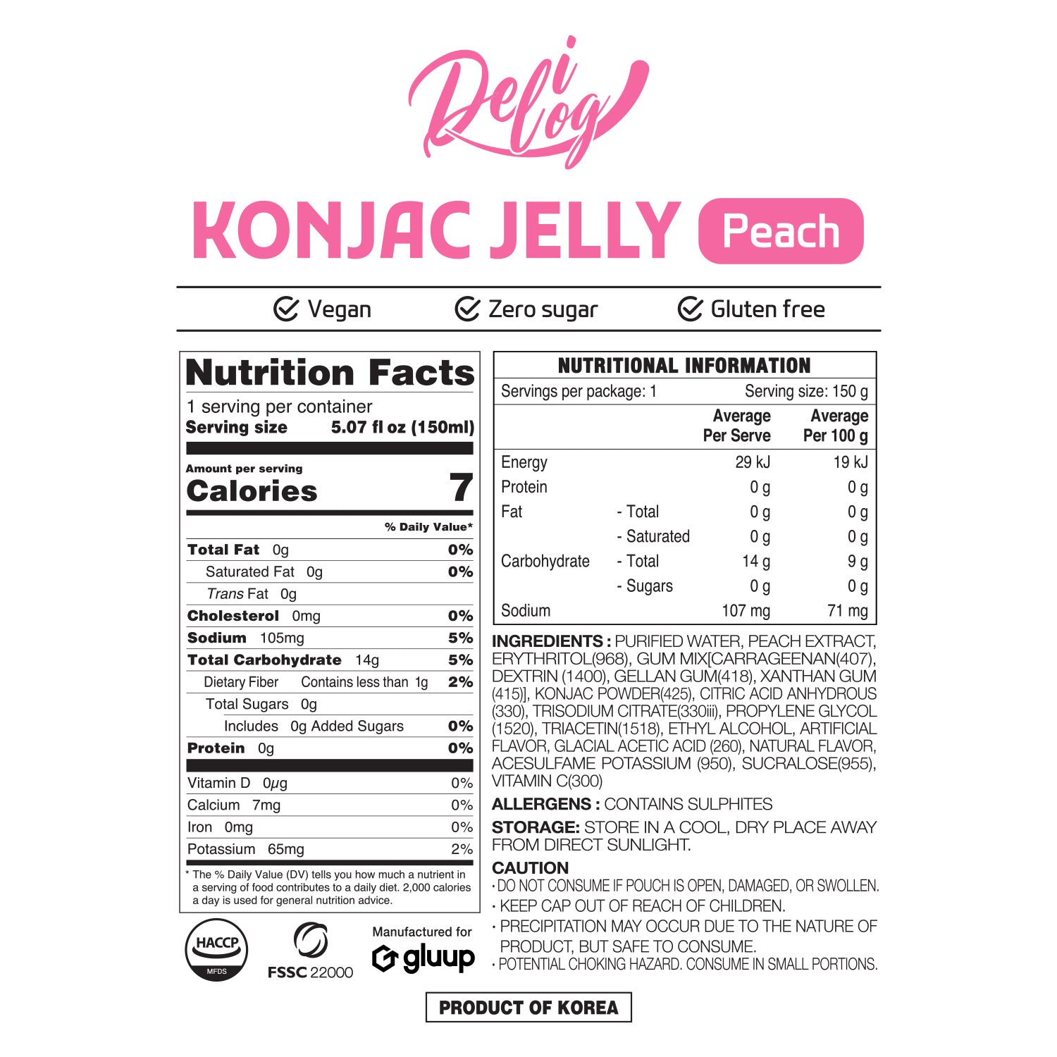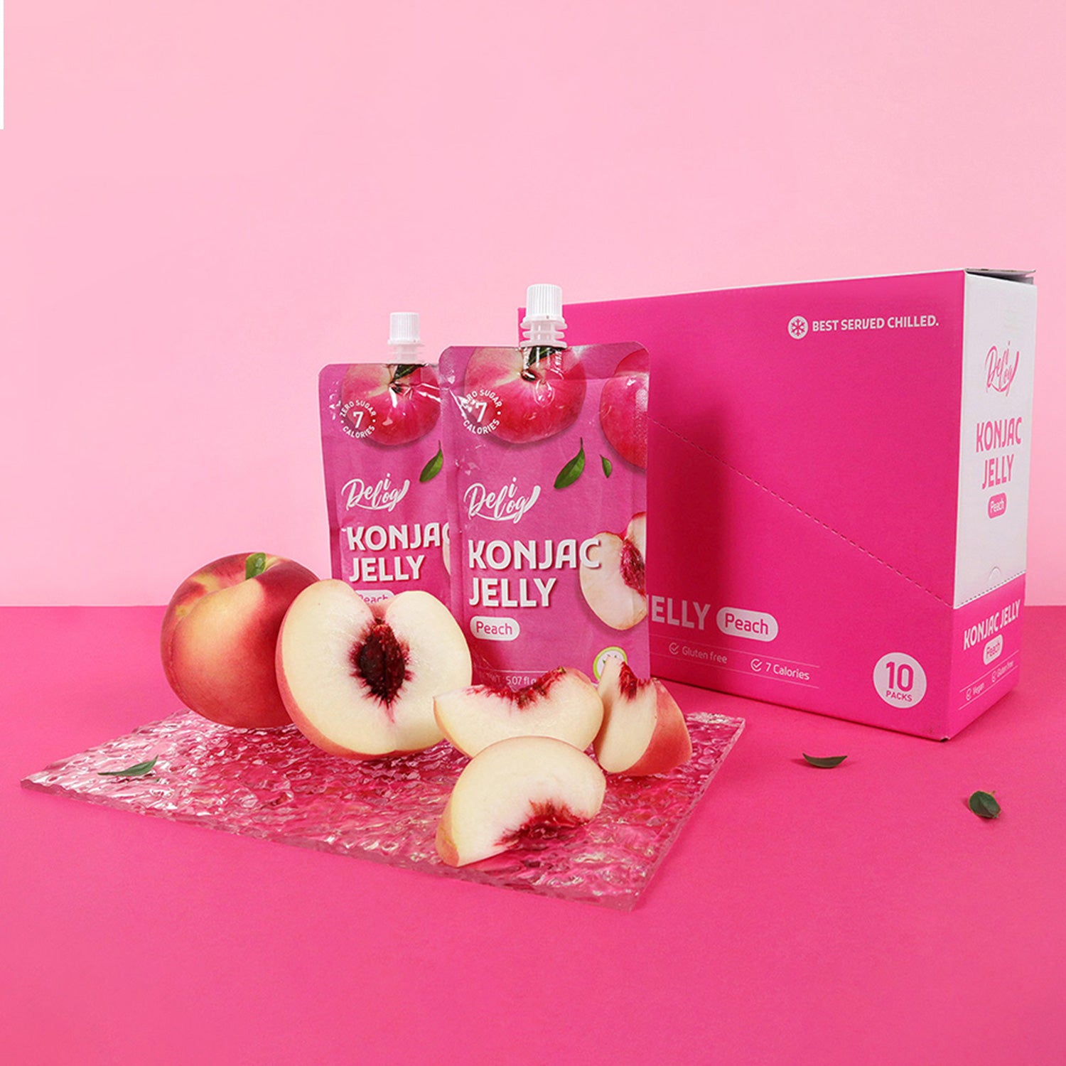 Delilog Konjac Jelly (Peach) stands as the ultimate low-calorie diet snack, providing a sweet and healthy alternative suitable for all ages. With only 7 kcal per pouch, this nutritious drinkable jelly, crafted from real fruit extract, offers a convenient and portable solution in its innovative spout pouch, ensuring you can enjoy it anytime, anywhere.