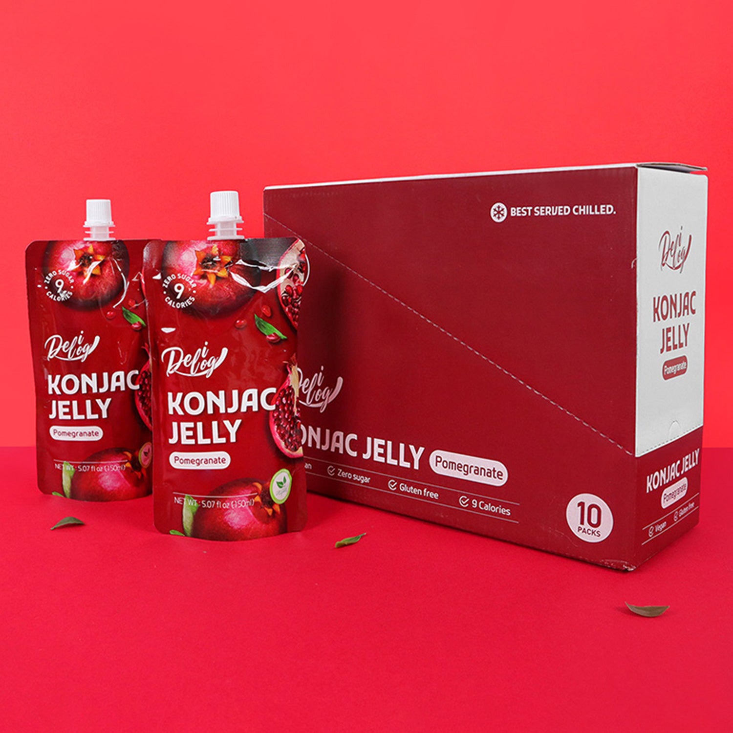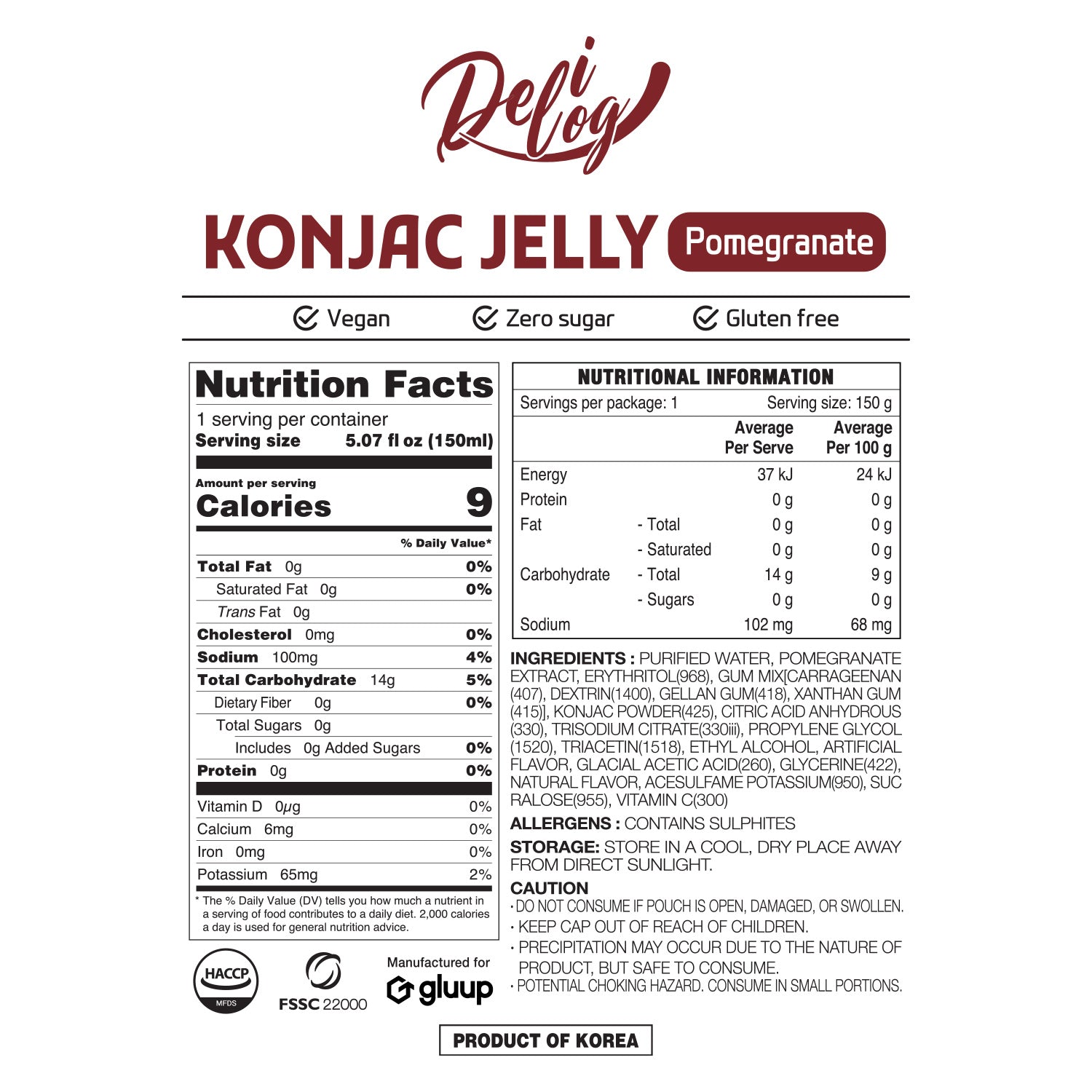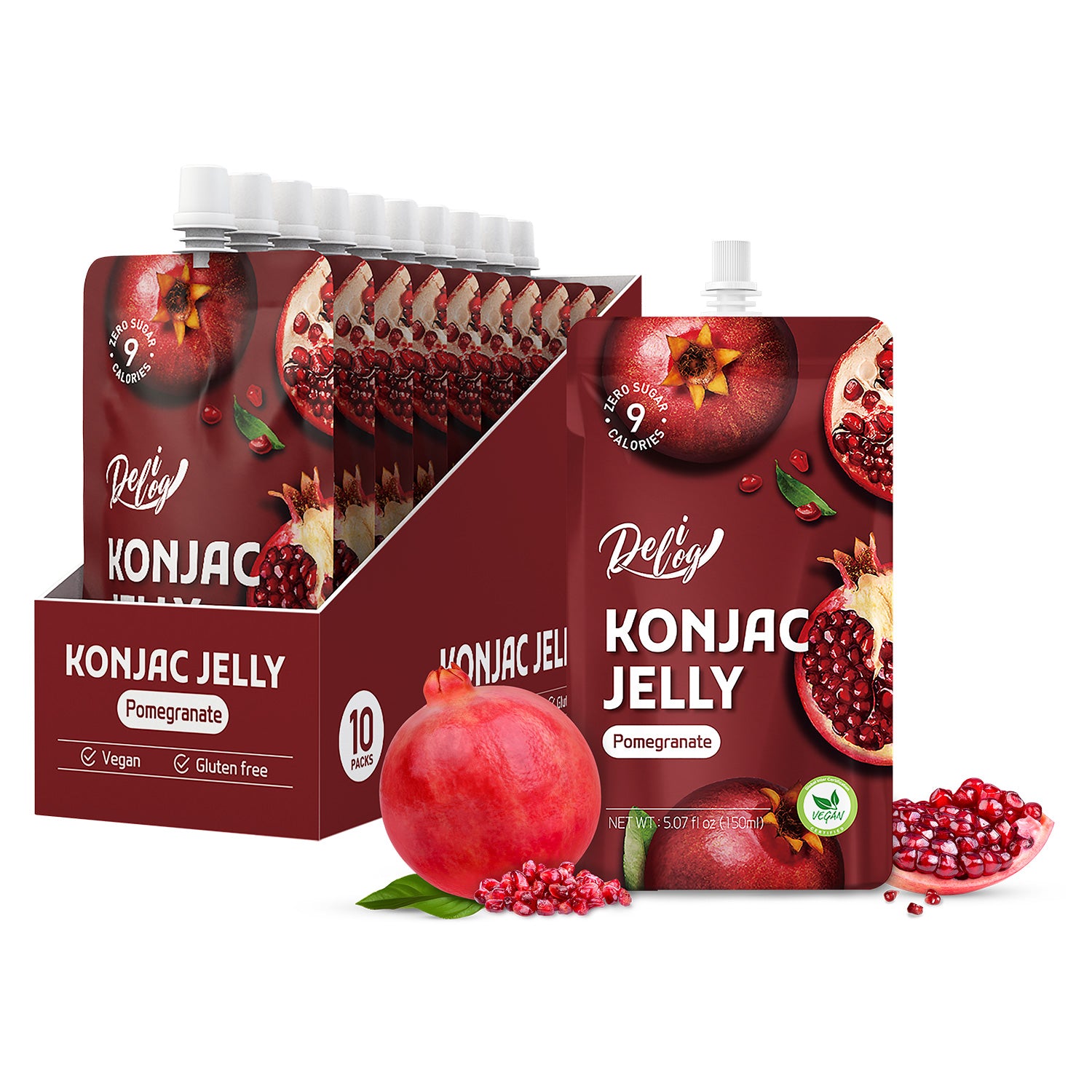 Delilog Konjac Jelly (Pomegranate) stands as the ultimate low-calorie diet snack, providing a sweet and healthy alternative suitable for all ages. With only 9 kcal per pouch, this nutritious drinkable jelly, crafted from real fruit extract, offers a convenient and portable solution in its innovative spout pouch, ensuring you can enjoy it anytime, anywhere.