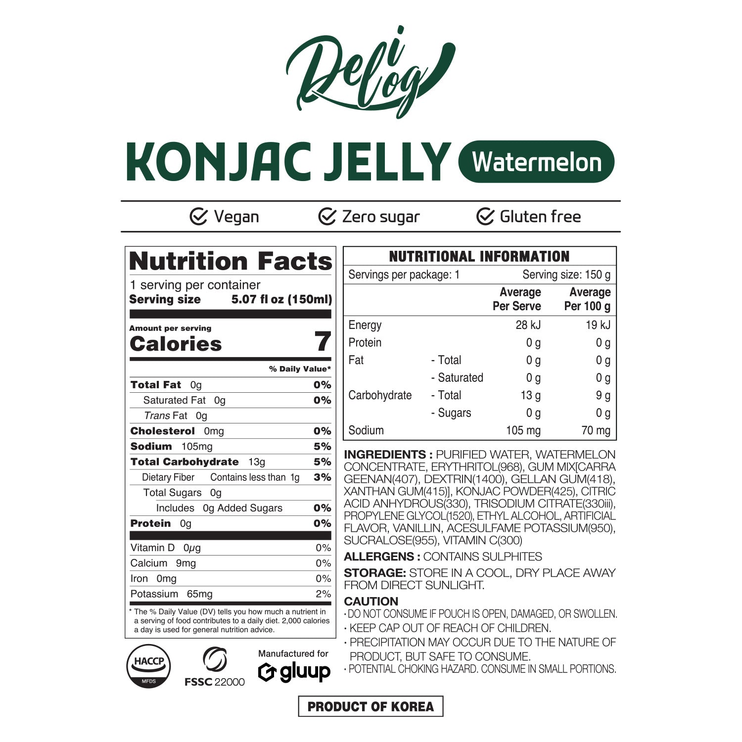 Delilog Konjac Jelly (Watermelon) stands as the ultimate low-calorie diet snack, providing a sweet and healthy alternative suitable for all ages. With only 7 kcal per pouch, this nutritious drinkable jelly, crafted from real fruit extract, offers a convenient and portable solution in its innovative spout pouch, ensuring you can enjoy it anytime, anywhere.
