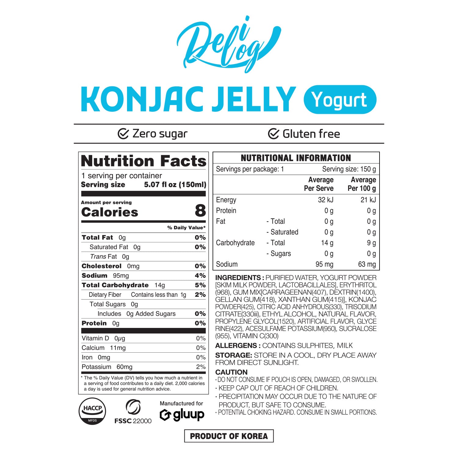 Delilog Konjac Jelly (Yogurt) stands as the ultimate low-calorie diet snack, providing a sweet and healthy alternative suitable for all ages. With only 8 kcal per pouch, this nutritious drinkable jelly, crafted from real fruit extract, offers a convenient and portable solution in its innovative spout pouch, ensuring you can enjoy it anytime, anywhere.